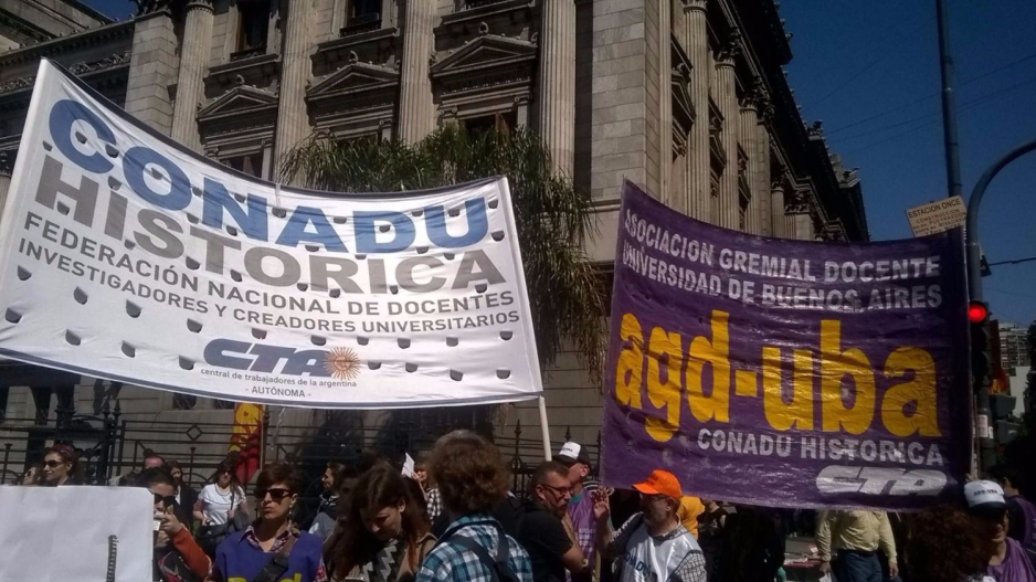 “Este mes, un profesor con dedicación semiexclusiva, que equivale a 20 horas de trabajo semanales, apenas supera lo $200.000”, señaló Celotto.Los docentes agrupados en Conadu Histórica montarán el viernes 15 al mediodía una carpa frente al Ministerio de Educación donde realizarán su congreso para definir cómo continúan su plan de lucha.