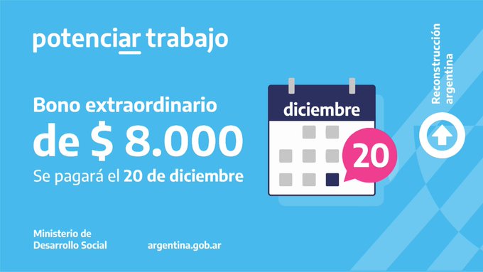 La información de la Agencia de Noticias Télam señala que “la cifra de 8000 pesos implica la mitad de la remuneración mensual del Potenciar Trabajo, cuyo monto es de 16.612 pesos y que equivale a la mitad del salario mínimo adoptado tras la última actualización del Consejo de Salario, que llevó el Salario Mínimo, Vital y Móvil a alrededor de 32.000 pesos (desde octubre, 31.938 pesos y a partir de febrero, 32.616 pesos)”.