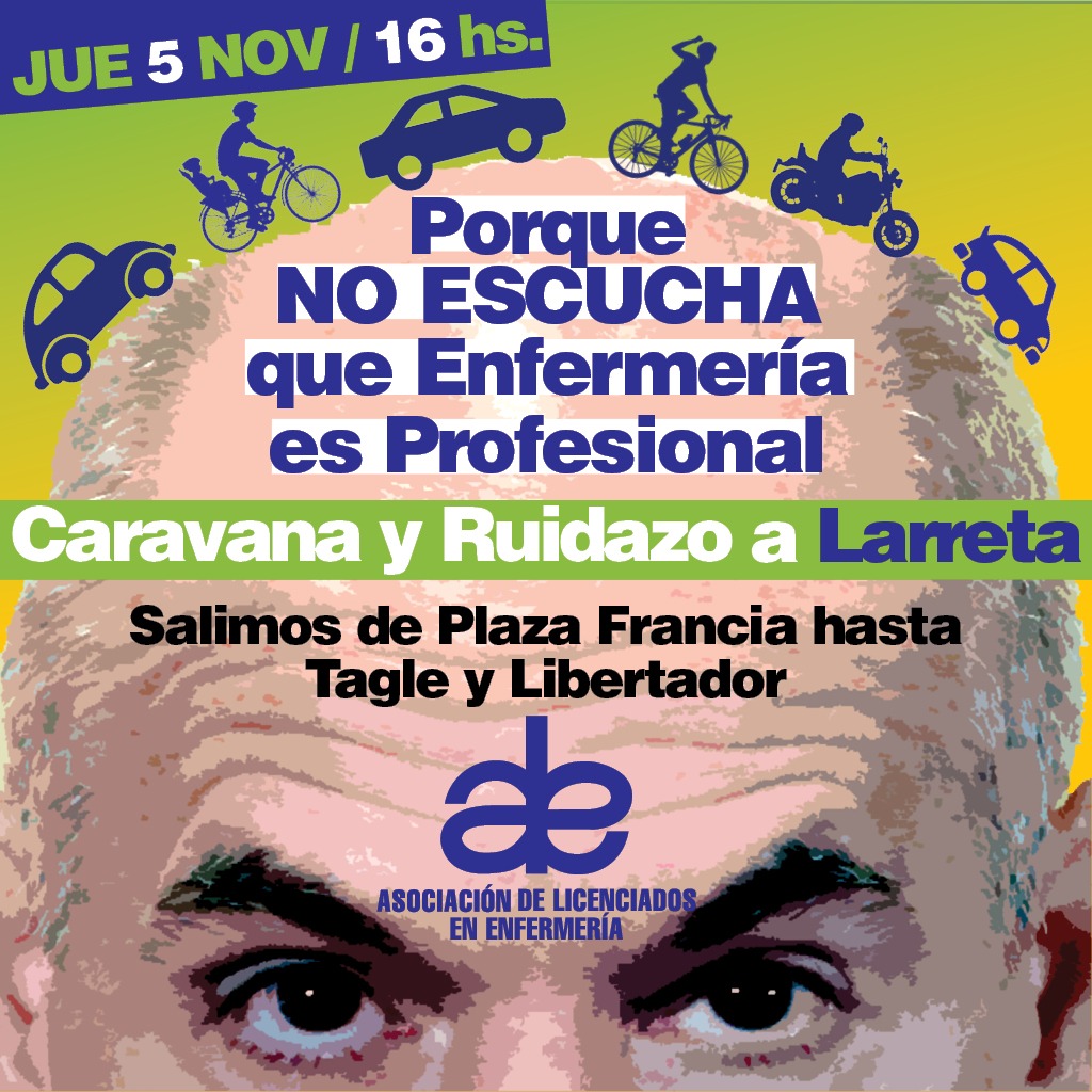 La enfermería está rabiosa. Marchamos a Legislatura y nos reprimieron, nos movilizamos y acampamos en Jefatura de Gobierno, y nos dieron la espalda. No bancamos más esta situación de desprecio y postergación: por eso, vamos con caravana y ruidazo contra Larreta”, subrayó Andrea Ramírez, enfermera del Hospital Ramos Mejía y directiva de ALE.