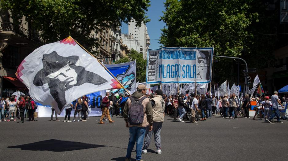 Las organizaciones sociales y políticas que integran el Bloque Social por el Trabajo, entre las que están el Frente Milagro Sala y la Federación Nacional de Trabajadores (FNT), organizaron un partido de fútbol en Plaza de Mayo, bajo la consigna "La Patria vs. el FMI".