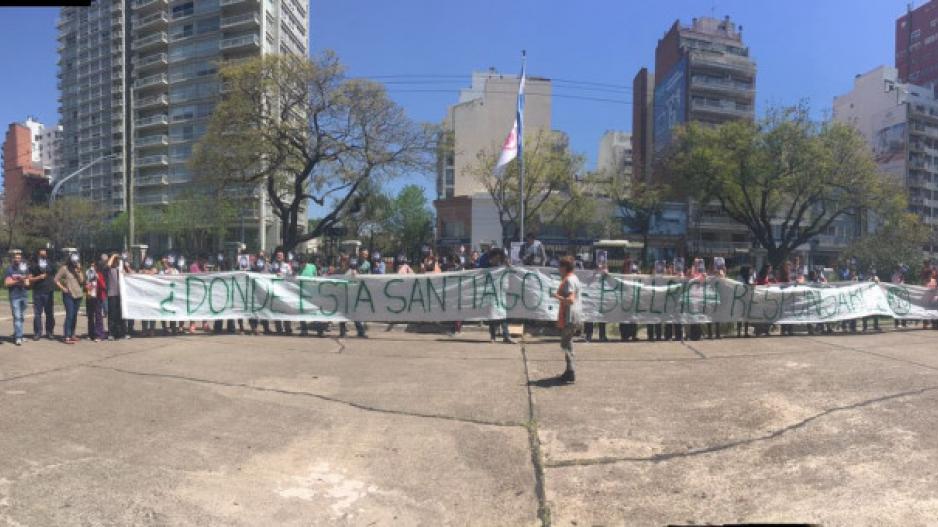 Sin embargo la ministra, que es fuertemente cuestionada por gran parte de la sociedad y por los organismos de Derechos Humanos, fue repudiada por los trabajadores que la recibieron con una inmensa bandera que preguntaba ¿Dónde está Santiago Maldonado?