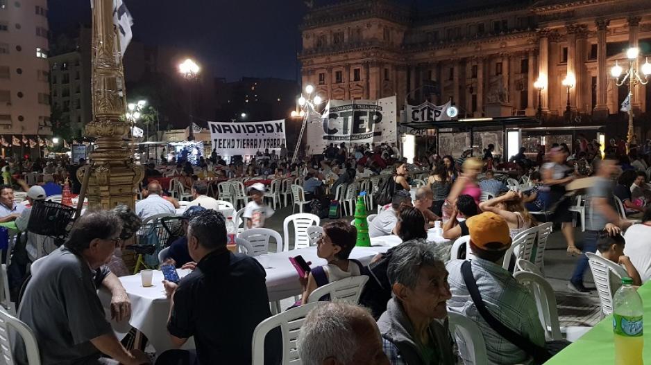 Igual que el año pasado, convocados bajo la consigna "Noche buena en unidad" y "Navidad por Justicia Social" las organizaciones sociales organizaron una cena para más de 2.000 personas "Sin Techo".