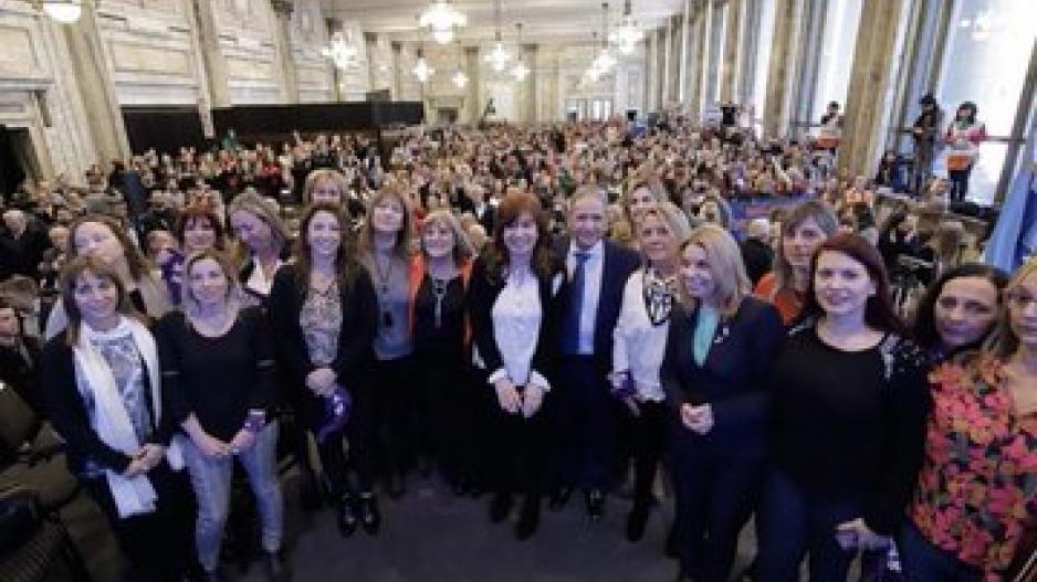 Con la participación de más de 800 delegadas de todo el país la semana pasada culminó el el 13° Encuentro Nacional de Trabajadoras Bancarias. Del cierre del encuentro de las trabajadoras bancarias participó, además del secretario general de la Asociación bancaria Sergio Palazzo, la participación de la ex presidenta y actual candidata a vice por el Frente de Todos Cristina Fernández de Kirchner.