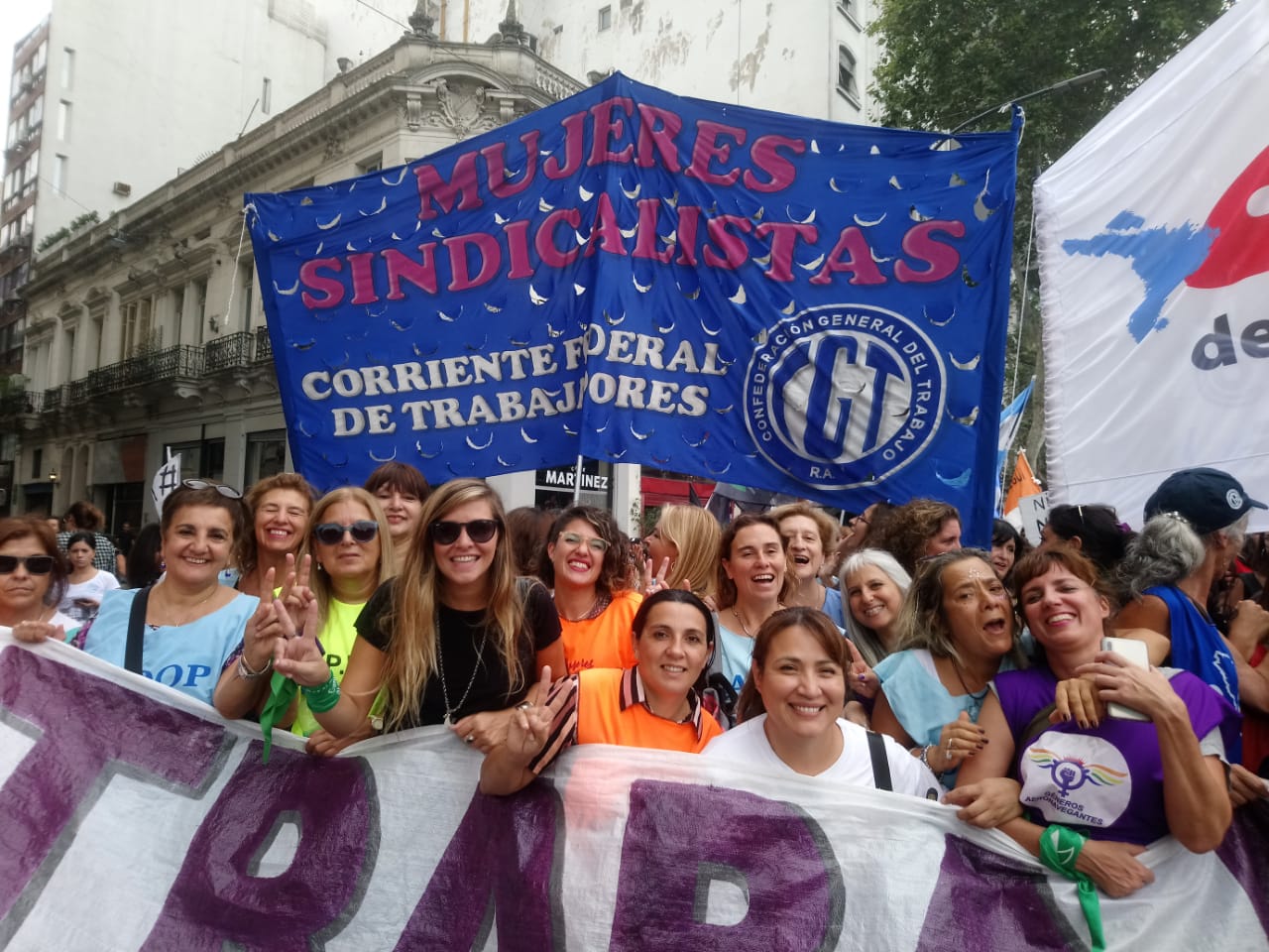 Las cartoneras, las costureras, las rurales, las trabajadoras golondrinas, las vendedoras ambulantes, las obreras de la construcción, las compañeras que trabajan en los comedores, merenderos y espacios comunitarios, las trabajadoras domésticas, las monotributistas, sindicalizadas y cuentapropistas, las trabajadoras sexuales, las desocupadas y ocupadas, todas se hicieron presentes en otra jornada histórica para hacer escuchar sus reclamos. “Perseguimos estar vivas, libres y sin miedo, pedimos trabajo digno y por ello celebramos la decisión política de ratificar el Convenio 190 de la OIT por el cual se erradica la violencia por cuestiones de género y el acoso en el mundo del trabajo. Es por ello que el feminismo y las mujeres sindicalistas, estamos haciendo historia y es un orgullo ser parte de ella”, dijo María Elisa Ronco, secretaria de género del Sindicato de los Profesionales de las Telecomunicaciones (CePeTel).