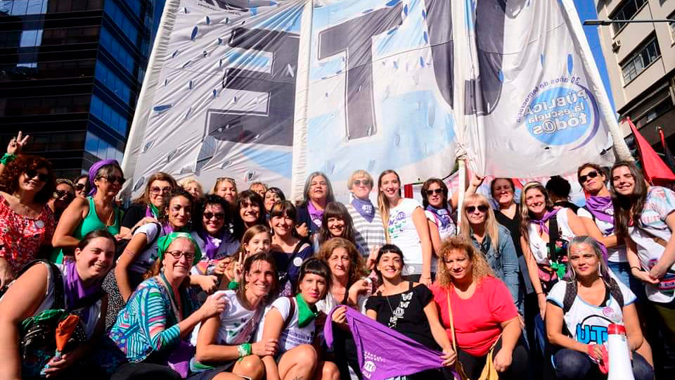 Bueno, partiendo del diagnóstico de que las mujeres trabajadoras tenemos un acceso y una permanencia desigual a los varones en el mercado de trabajo tanto en términos horizontales, en aquellas tareas o trabajos que son feminizados como la docencia y la enfermería, y tuvieron históricamente salarios postergados. Como en términos verticales, producto de que justamente como somos las principales responsables de las tareas de cuidado en la cultura patriarcal nos cuesta más acceder a cargos de jerarquía y a cargos de representación política y sindical. El ajuste del gobierno neoliberal que existe tanto a nivel nacional como en la Ciudad de Buenos Aires nos impacta en mayor medida a nosotras. Eso hace que la tasa de desocupación sea de nueve por ciento en los varones a nivel nacional y en las mujeres sea del diez por ciento. Y en el caso de las mujeres jóvenes sea del veinte por ciento. Eso hace que todos los índices de desocupación, de subocupación, de informalidad impacten más en las mujeres trabajadoras. En el sur de la Ciudad de Buenos Aires por ejemplo la desocupación es del siete por ciento en los varones y del once por ciento en las mujeres. Todos los índices son muchísimos más altos en el caso de nosotras, de cuando hablan de nosotras, y eso hace que haya un impacto mayor en la realidad de las condiciones de vida de las mujeres. Por eso es que también decimos que el ajuste tiene cara de mujer, porque impacta en mayor medida en las mujeres trabajadoras. Y en el caso de las docentes, muchas de las docentes de la Ciudad de Buenos Aires son jefas de hogar, o sea sostienen o tienen el mayor ingreso de salario familiar, por lo tanto también repercute muy negativamente en nuestra realidad porque la depreciación de nuestro salario a lo largo de estos años por la falta de paritaria nacional, porque la inflación le está ganando al salario, por las devaluaciones continuas, hacen que nos cueste más llegar a fin de mes. Tenemos muchas compañeras que cuentan una realidad en la cual no llegan a fin de mes y tienen que comenzar a buscar changas que les permitan acceder a un tercer salario para poder sortear la subsistencia cotidiana de sus familias.