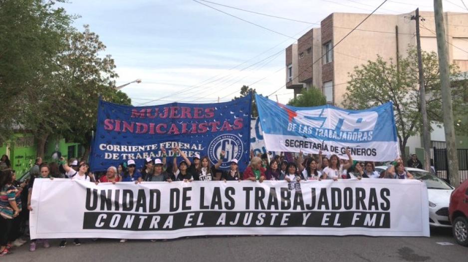 A partir del pacto con el Fondo Monetario Internacional, el gobierno de Cambiemos "aseguró un porvenir de más hambre, pobreza y represión. Sufrimos este año el recorte y ajuste de muchos programas de salud reproductiva y maternidad, generando esto no solo el despido de compañeras y compañeros, sino también que cuando una mujer está en una situación de violencia no pueda acceder a un programa del Estado, por lo que cuesta mucho más salir de esa situación y termina dependiendo de las organizaciones sociales y familiares que la acompañan." Maceiras plantea que "desde las centrales sindicales debemos aprender de nosotras mismas, de este movimiento feminista que supimos construir por las problemáticas comunes que tenemos, y apostar a construir espacios sindicales diversos, plurales, donde podamos poner por delante el punto que tenemos en comun que es nuestra pertenencia de clase, que todas somos trabajadoras, que todas sufrimos el ajuste de este Gobierno. Nos venimos organizando para esta ocasión en distintas reuniones, talleres, espacios de encuentro entre las compañeras de cada sector, pensando las problemáticas específicas de cada lugar y también en los espacios compartidos, donde nos encontramos compañeras ya sea de la economia formal como de la economia informal, popular, cooperativistas, donde buscamos estas problemáticas comunes y pensamos acciones concretas para llevar adelante y poder pelear por nuestros derechos. Tambien vamos construyendo redes de contencion y de acompañamiento para personas en situación de violencia para no estar aisladas, para ayudarnos en cada momento. Este 8M queremos invitar a todxs a participar y salir a la calle para gritar bien fuerte que nosotras no queremos cargar con el ajuste. Invitamos a todas a participar y a parar".