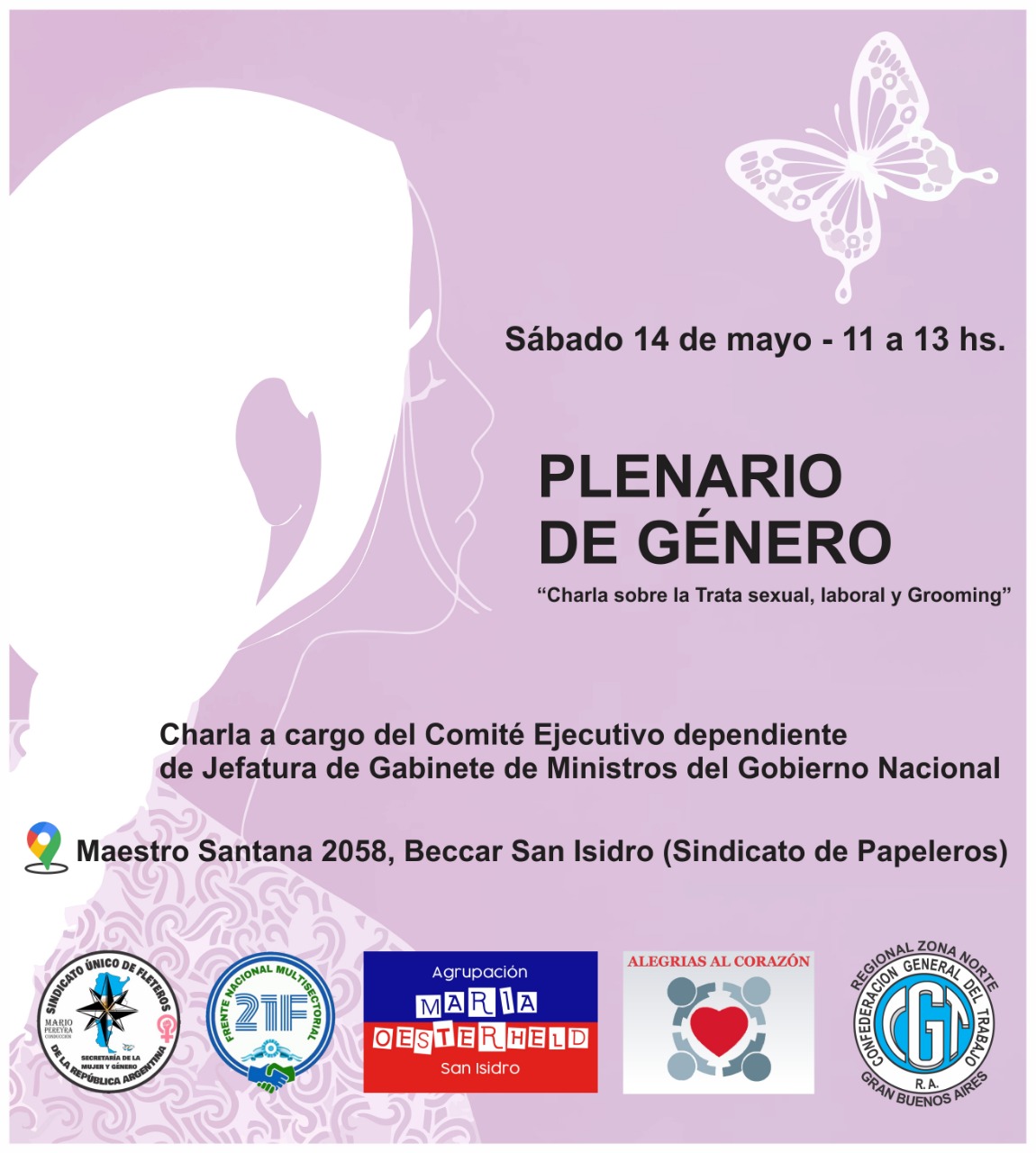 El encuentro fue realizado en la sede del Sindicato de Obreros Papeleros de Beccar en el distrito de San Isidro. El charla estuvo a cargo, de Pilar Golman, perteneciente a los equipos técnicos del Comité ejecutivo de lucha contra la trata y explotación de personas para la asistencia a las victimas y