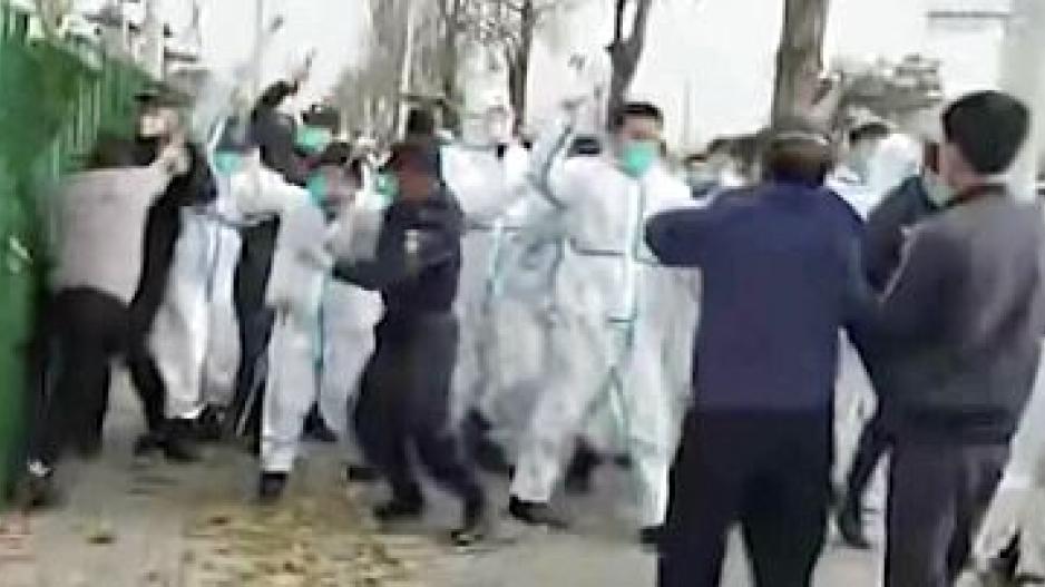 En videos compartidos en las redes sociales Weibo y Twitter se pudo observar a cientos de trabajadores chocando con la policía antidisturbios y a personas con trajes de protección, según verificó la agencia de noticias AFP.