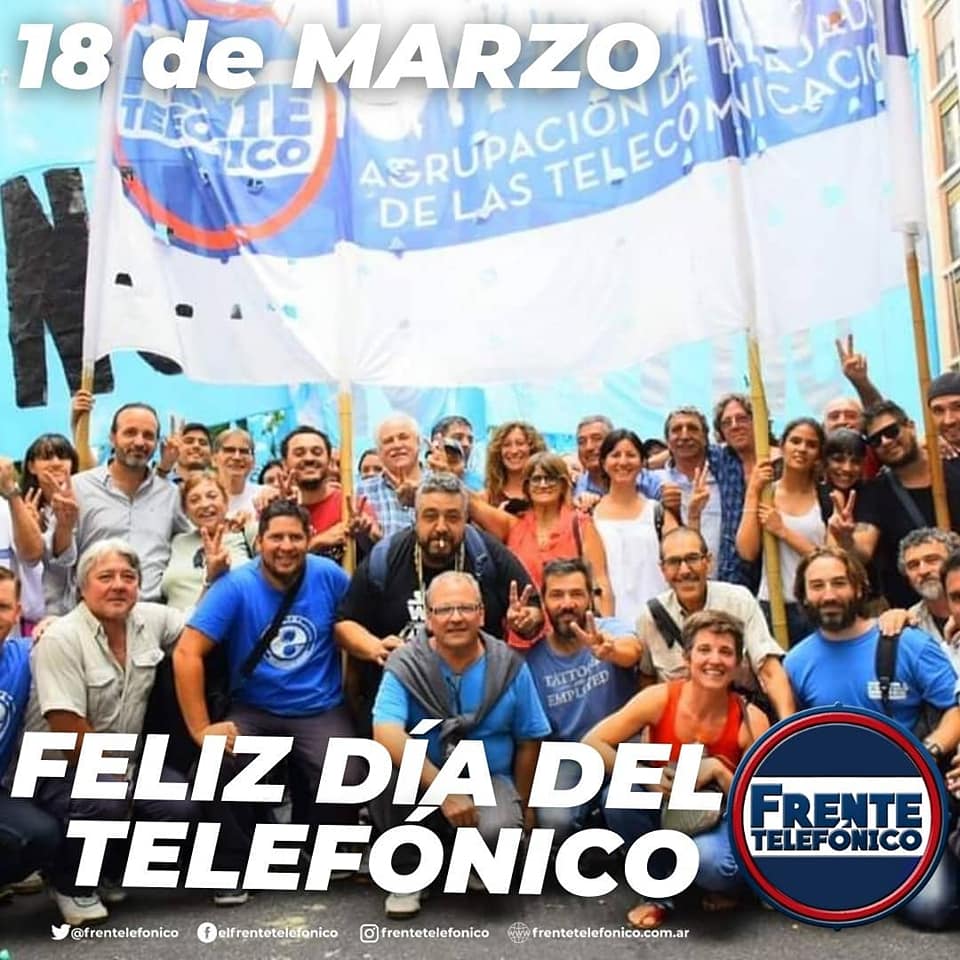 Cada 18 de marzo el Frente Telefónico, conmemora la fecha con una serie de actividades y sorteos, que se agrega a una gama de importantes servicios que otorga el sindicato y pueden conocer, ingresando a http://www.frentetelefonico.com.ar/