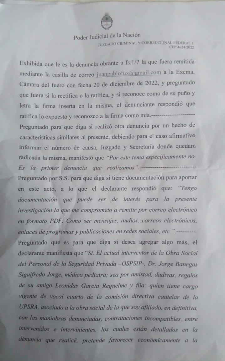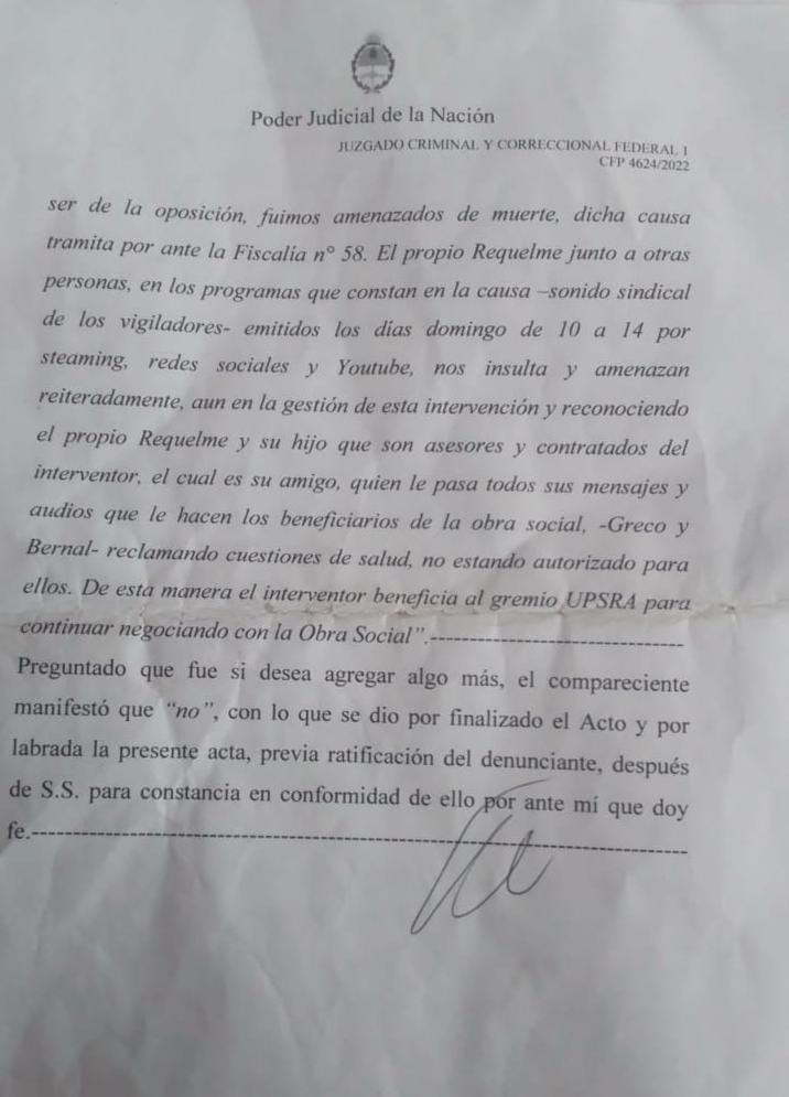 Desde el programa La Sur y el Vigilador, que conducen Marcelo Greco y Juan Pablo Fucks, que vienen desde hace meses denunciando judicialmente la dudosa vinculación entre la actual intervención de la OSPSIP y sectores del oficialismo de la UPSRA, provocando perjuicio a las y los afiliados mediante el manejo de predios, contrataciones, y adulteración de padrones y demás irregularidades, han empezado a dar sus frutos.