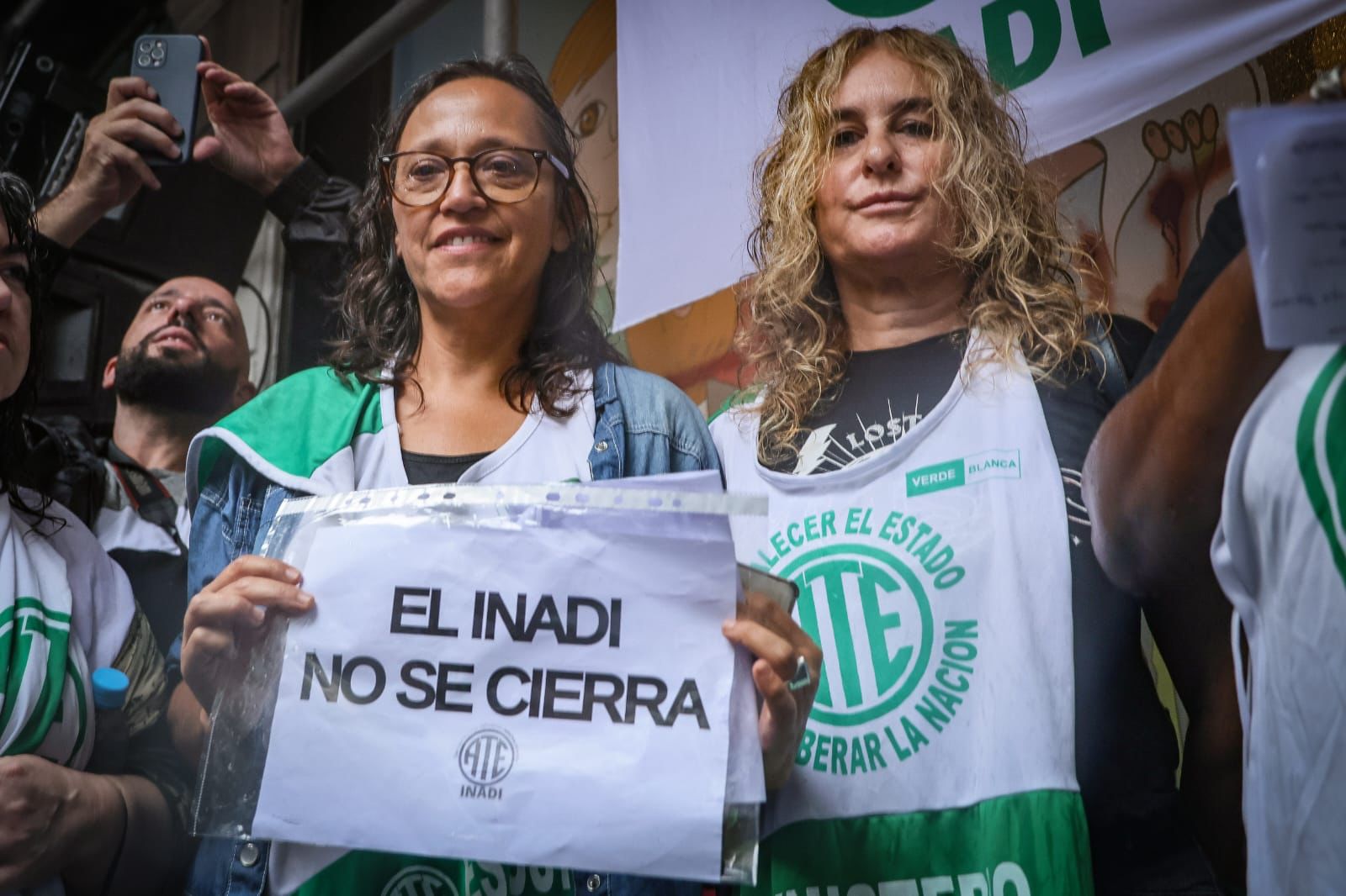 Al mismo tiempo, y en el marco de la jornada, cientos de trabajadores y trabajadoras abrazaron junto a organizaciones sociales, de DDHH y sindicales al INADI (donde se destacó la presencia de la diputada Mónica Macha entre otras personalidades que asistieron) dado que pretenden cerrarlo de manera ilegal y arbitraria.