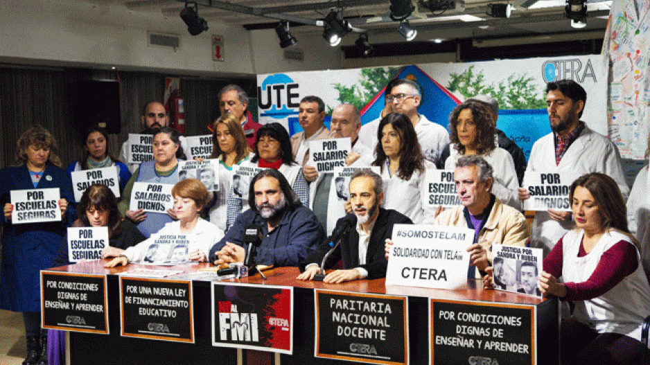 A través de una conferencia de prensa, de la que participaron Eduardo López, secretario general de UTE y gremial de CTERA, Roberto Baradel, secretario general del SUTEBA y adjunto de CTERA, María Laura Torre, Secretaria Adjunta de SUTEBA, entre otros, lxs representantes gremiales de las entidades señalaron el conflicto educativo a nivel nacional, provincial y en la Ciudad de Buenos Aires.