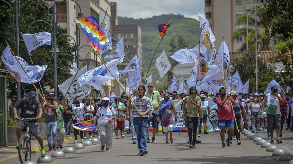 Dijo también que la protesta es también para que "cese la detención arbitraria de compañeros y compañeras", que data del anterior gobierno de Mauricio Macri, y en pos del respeto al "estado de derecho". "El acampe es por nuestra compañera Milagro Sala y por todos los compañeros y compañeras detenidos en Jujuy", insistió.
