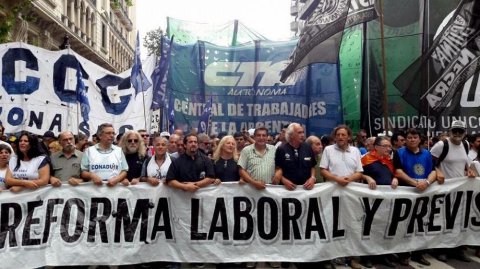 Las movilización contra las reformas laboral y previsional convocada por ATE nacional, la CTEP, Barrios de Pie, la CCC, los partidos y movimientos de izquierda y la CTA Autónoma, entre otros gremios, superó el millón de personas en todo el país --informaron los organizadores-- y colmó la Plaza de Mayo con 80 mil trabajadores y militantes sociales. Los dirigentes de las organizaciones convocantes adelantaron que volverán a movilizarse y rodearán el Congreso, el día en que se intenten votar las reformas impulsadas por el Gobierno nacional y confiaron en que ese día "se van a multiplicar las marchas en todo el país".