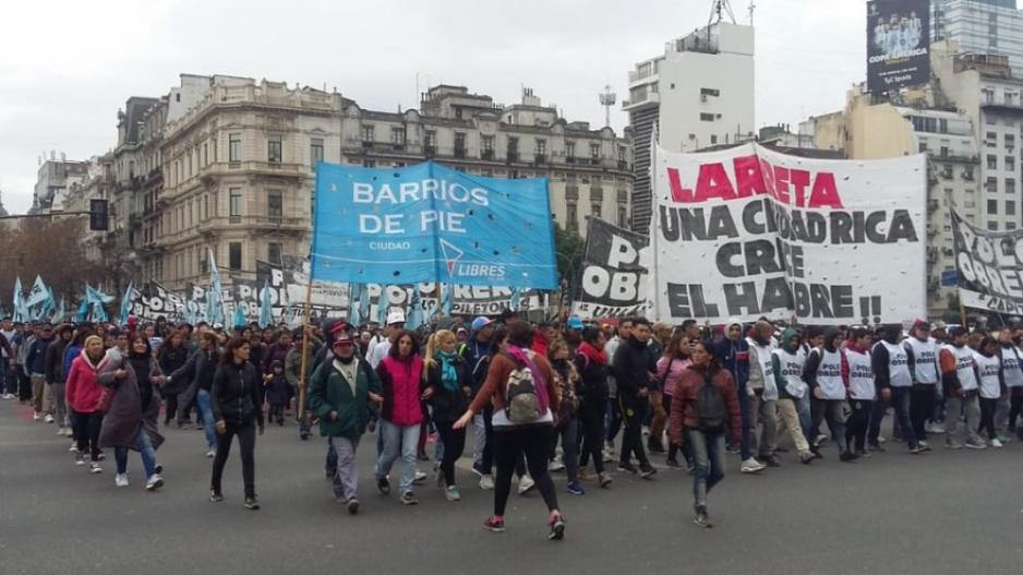 Barrios de Pie se manifestará el jueves 11 a partir de las 14 en el Obelisco con ollas vacías para "visibilizar la falta de asistencia del gobierno de la Ciudad", según manifestaron a través de un comunicado.