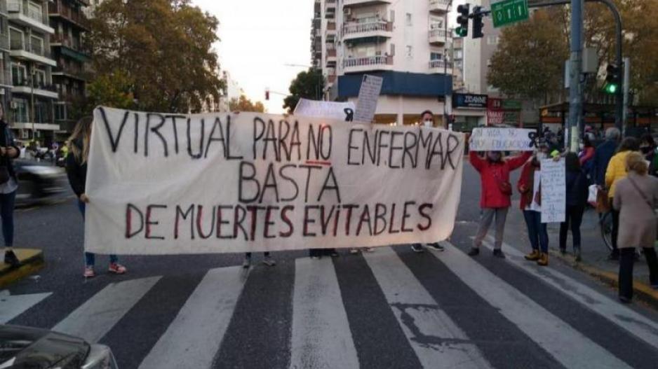 En reclamo de la suspensión temporal de la presencialidad, y en lo que constituye la cuarta semana de protesta, los docentes indicaron desde UTE que se realizan 'semaforazos' y una radio abierta en el D.E. 4 y 5 ubicado en Martín García y Almirante Brown, a las 17:30; y en el D.E. 15 y 16 de Triunvirato y avenida Monroe, a las 17 hs.