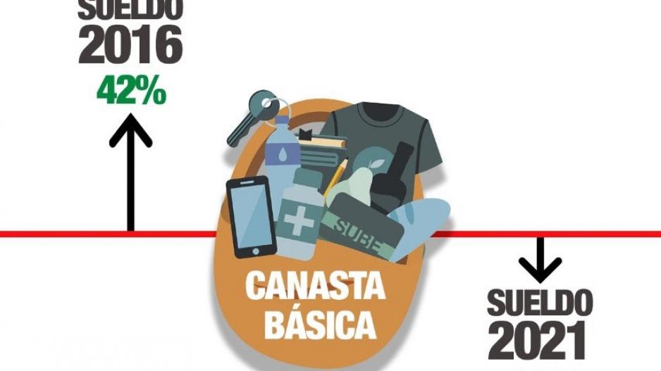 El comunicado advierte sobre “otro dato central que omite” el pirulo de tapa: La pérdida de poder adquisitivo durante el lustro de gestión Santa María. Un sueldo promedio que cinco años atrás estaba 42 puntos arriba de la canasta básica hoy está 18 puntos abajo. Traducido: quien araña un sueldo de 45.000 pesos (con la línea de pobreza en 60.800) debería cobrar 86.000 para recuperar el poder adquisitivo anterior a la era Santa María.