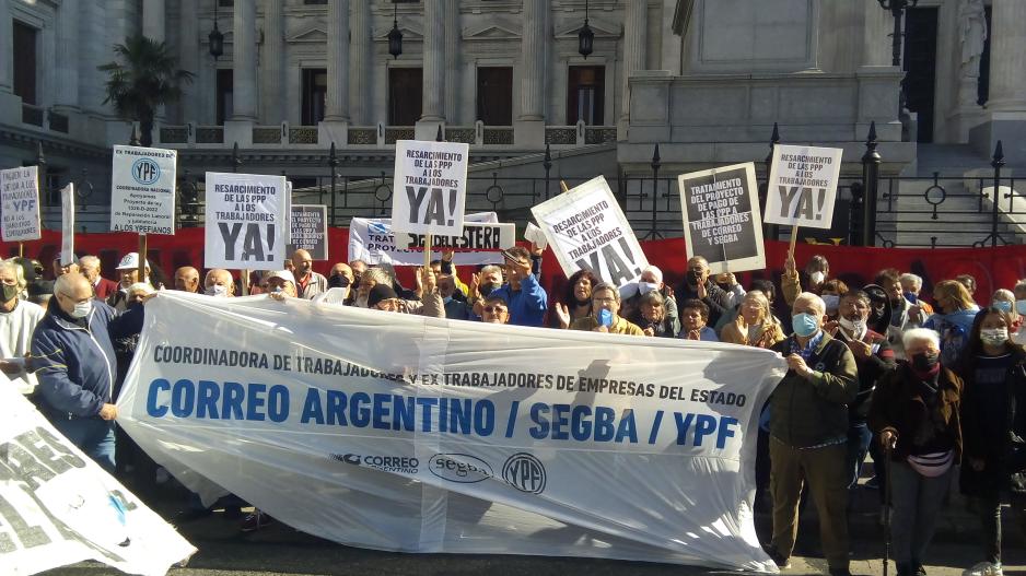 "Solicitamos al Congreso Nacional la sanción de las leyes de reparación; por la propiedad participada de las empresas públicas privatizadas y los derechos laborales y previsionales de los compañeros cesanteados durante el proceso de privatizaciones", anunciaron los trabajadores a través de un comunicado.