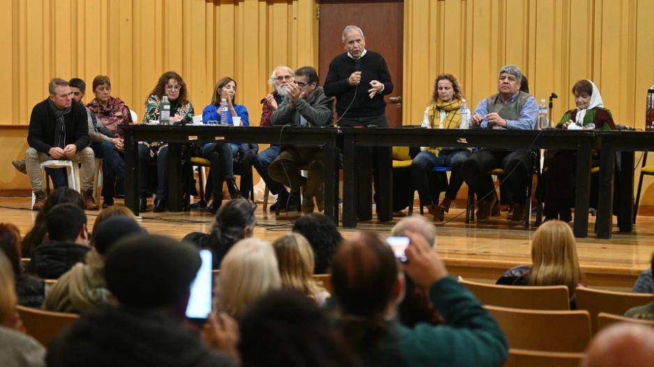 El encuentro de este lunes 3 al mediodía da continuidad a la reunión del 14 de mayo en la Facultad de Ciencias Sociales de la UBA, donde diversos sectores se unieron para fortalecer la unidad y planificar las actividades previas y durante la votación de la ley. Encabezaron la reunión “Taty” Almeida; Ricardo Peidro de la CTA Autónoma; Pablo Moyano de la CGT; y Hugo Yasky de la CTA de los Trabajadores.