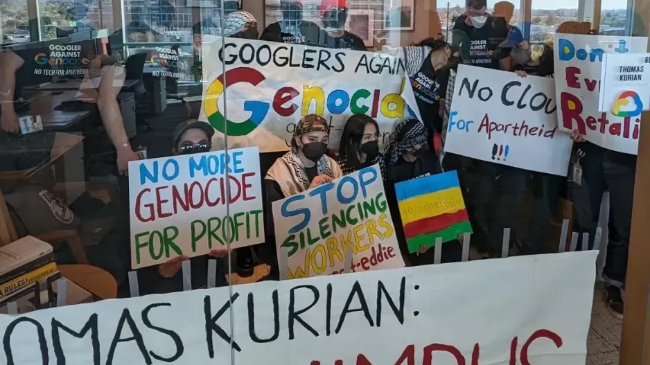 Según un portavoz de la empresa, la manifestación tuvo lugar el martes en Sunnyvale, California, donde la policía arrestó a los trabajadores en la oficina del director ejecutivo de Google Cloud, Thomas Kurian. Los manifestantes sostuvieron carteles que decían "Googlers contra el genocidio", refiriéndose a los ataques de Israel en Gaza.