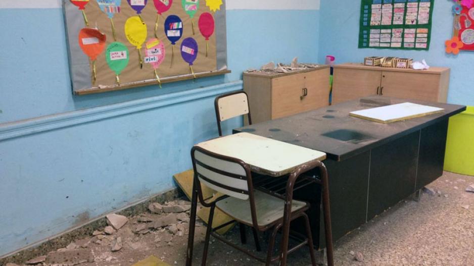 De los casos relevados destacan que "En la escuela primaria 4 DE 14, ubicada en la calle 14 de Julio 546, se cayó parte del techo de 4º grado en plena clase por una obra de hace 2 años que fue mal realizada. La mampostería golpeó a una docente en lo que pudo ser una desgracia mayor. A raíz de esto la docente debió ser atendida por la ART y lxs niñxs reubicados en diferentes aulas".