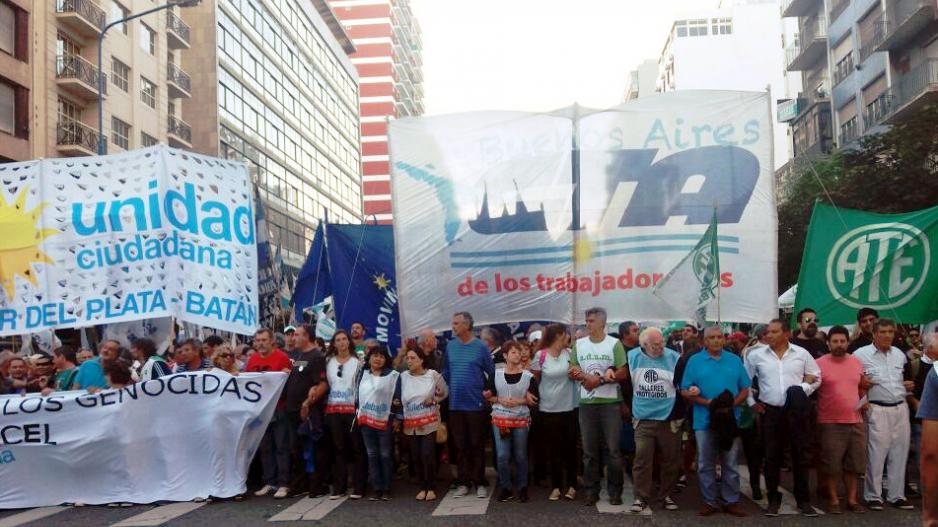 A la movilización se sumó un importante número de sindicatos que viajaron expresamente a Mar del Plata para participar de la concentración, y un amplio abanico de partidos y agrupaciones políticas.