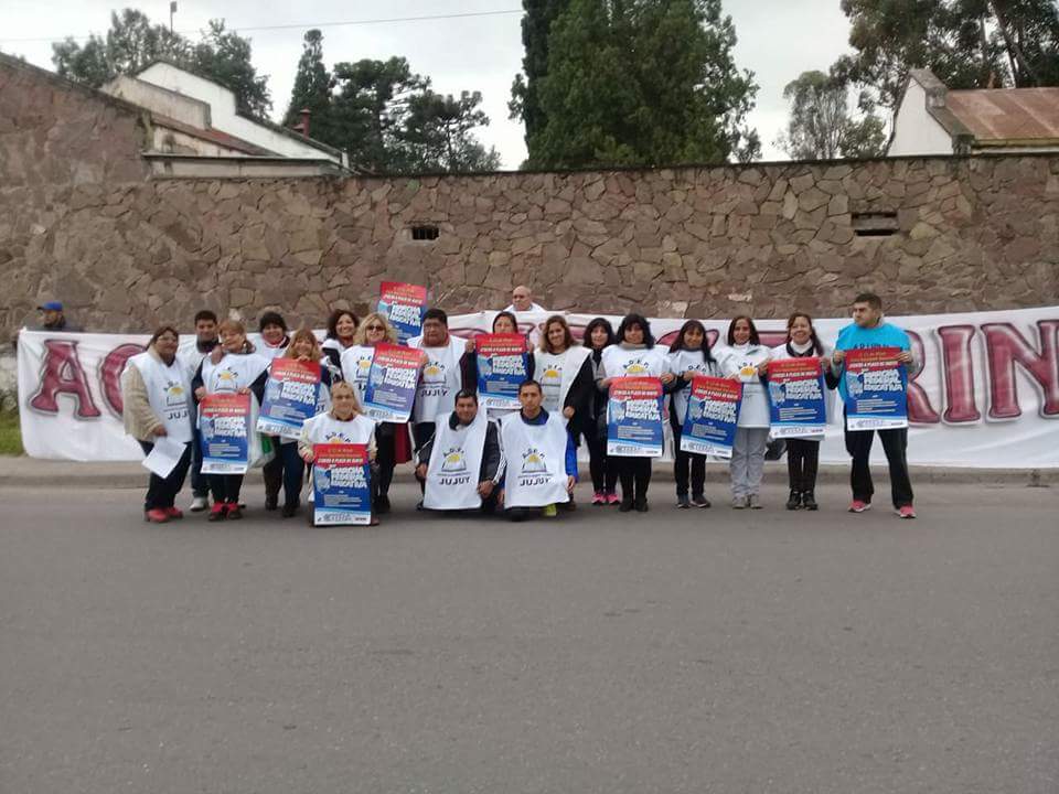 Los docentes jujeños también marchan "por la Paritaria Nacional Docente, por la resolución de los conflictos provinciales, por una nueva Ley de Financiamiento Educativo, en defensa de los Institutos Superiores, contra los techos salariales y contra el acuerdo con el FMI".