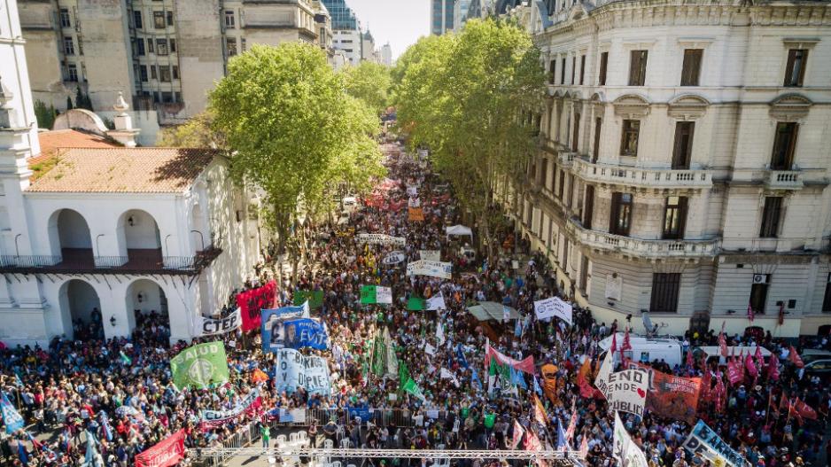 "El gobierno de Macri está resignando funciones indelegables del Estado. Por eso esta movilización hoy", afirmó Sueiro y agregó: "Este es el puntapié inicial de una serie de acciones que van a culminar el próximo 24 (fecha en la que se votará el presupuesto) en una movilización al Congreso justamente en rechazo y reclamo de un presupuesto distinto, pero fundamentalmente queremos saber quiénes son los diputados y senadores que van a animarse a levantar la mano para aprobar un presupuesto impuesto por el Fondo Monetario Internacional en desmedro de políticas de Salud, de Educación, de soberanía alimentaria".
