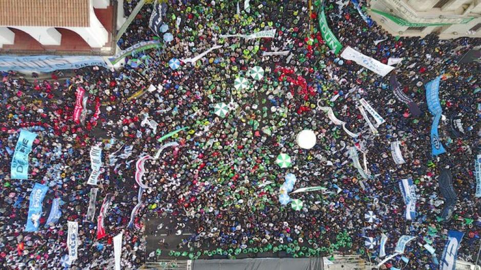 Dirigiéndose a la multitud de trabajadores y trabajadoras Yasky señaló que “Si hay caos, si hay desorden, si las cosas están patas para arriba, no es culpa de ustedes, no es la culpa de nuestras mujeres, de nuestras jubiladas, de nuestras trabajadoras, de nuestras familias, es la culpa de los que vinieron a bajar salarios, a apretar con la reforma laboral, de los que vinieron a ponerse de rodillas frente al Fondo, a pagarle a los que no tenían que pagar como lo están haciendo, a costa de nuestro sacrificio” fue claro sobre el año electoral al afirmar que “tenemos que ir hacia octubre y llegar a octubre peleando, en la calle con dignidad, orgullosos de ser trabajadores, orgullosos de las Madres de Plaza de Mayo que hoy cumplen sus 42 años”.