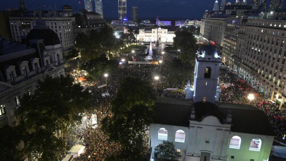 La movilización fue convocada por decenas de colectivos feministas, estudiantes, sindicatos y organizaciones sociales. Al color violeta, que identifica el 8M en todo el mundo, las mujeres argentinas sumaron el verde de la campaña por la legalización del aborto y el naranja, que exige la separación de la Iglesia y el Estado. También alzaron la voz contra los feminicidios, una de las grandes lacras sociales del país sudamericano. Cabe citar, en este sentido, que sólo entre enero y febrero de este año 2019 hubo 54 casos.
