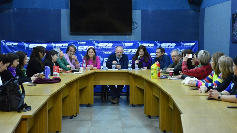 En la sede de la CTA de los trabajadorxs, referentes de género de la CGT, de la CTEP y de las 2 CTA se reunieron para discutir el proyecto de Equidad de género en el mundo laboral enviado por e gobierno al parlamento. Un proyecto de reforma laboral encubierta, según las mujeres sindicalistas