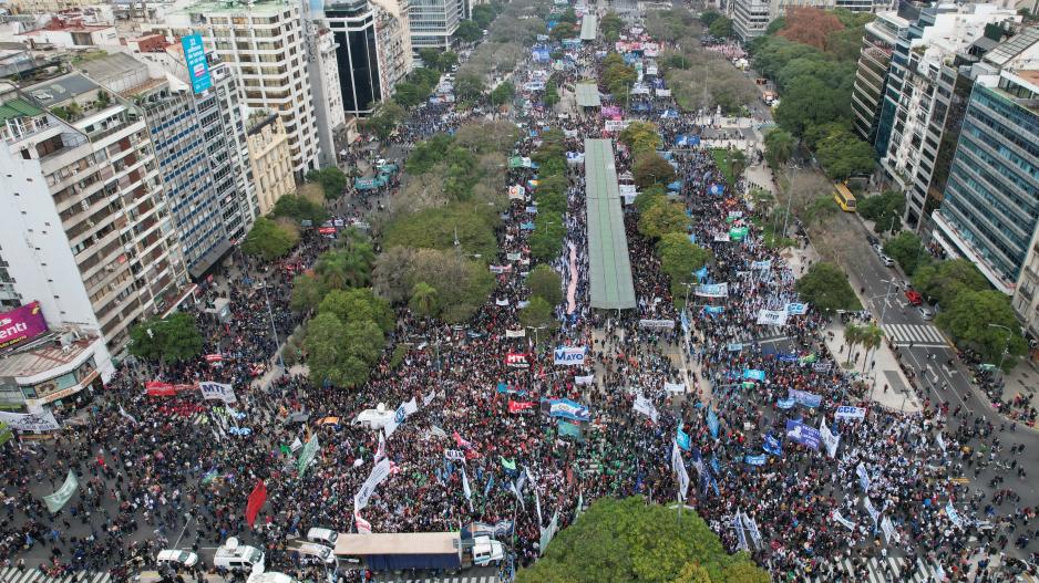 Al finalizar, la multitud congregada sobre la Avenida 9 de Julio cantó el Himno Nacional y se desconcentró pacíficamente por las calles del centro porteño.