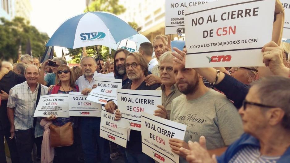La movilización fue acompañada por centenares de trabajadoras y trabajadores del Sindicato Argentino de Televisión (SATSAID) pero además contó con el apoyo de gremios de la Corriente Federal de Trabajadores de la CGT, de la CTA, de organizaciones políticas, sociales y civiles, vecinos y televidentes en apoyo a los trabajadores de C5N.