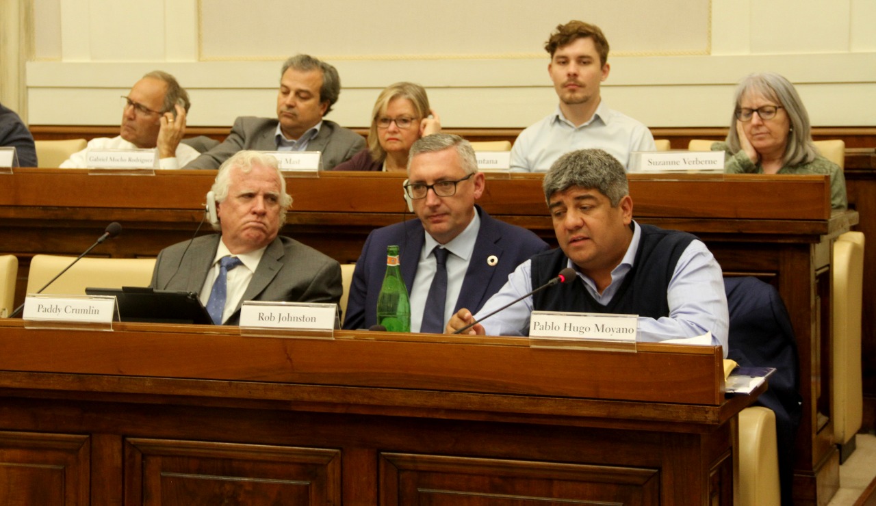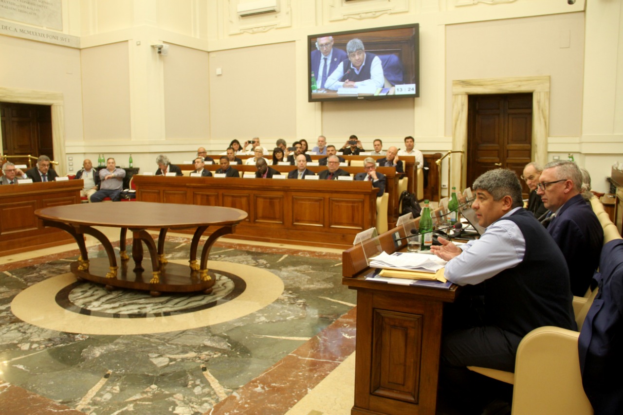 El titular de Camioneros participó de una cumbre del Transporte Internacional por el Cambio Climático, Tráfico Humano y nuevas tecnologías transportistas que tuvo lugar este 4 de marzo en el Vaticano y criticó duramente al gobierno de Mauricio Macri por atacar los derechos de los trabajadores, destruir la actividad económica del país y favorecer a los sectores más concentrados de la economía como el agro y la minería.