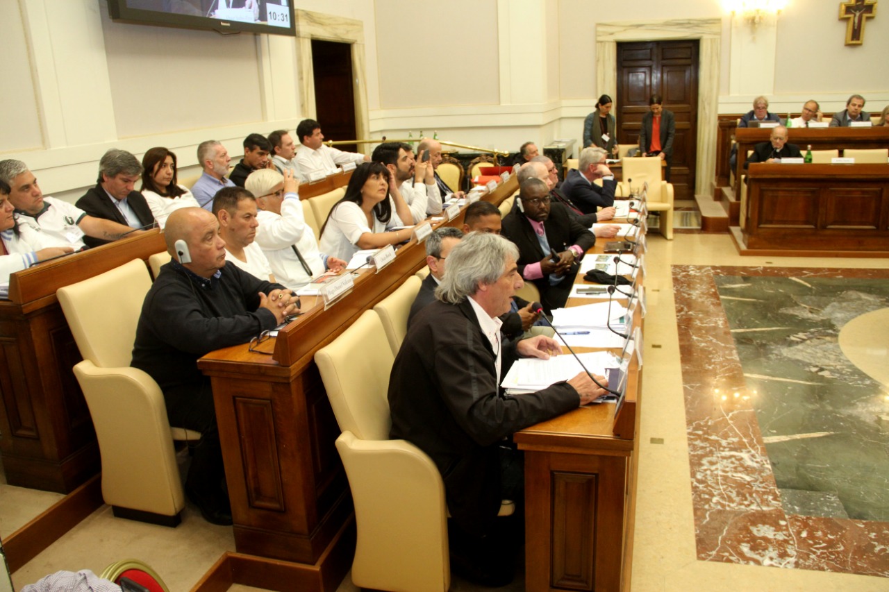 Primero quiero agradecer a monseñor Marcelo Sánchez Sorondo, el compañero y amigo de los trabajadores, quien desde el primer día que nos conocimos siempre a disposición de los trabajadores, como el compañero Gustavo Vera uno de los organizadores de este coloquio, también agradezco a marítimos, portuarios, aeronavegantes, ferroviarios que vinieron junto a nosotros desde Argentina. También al Papa que es quien nos permite estar aquí.