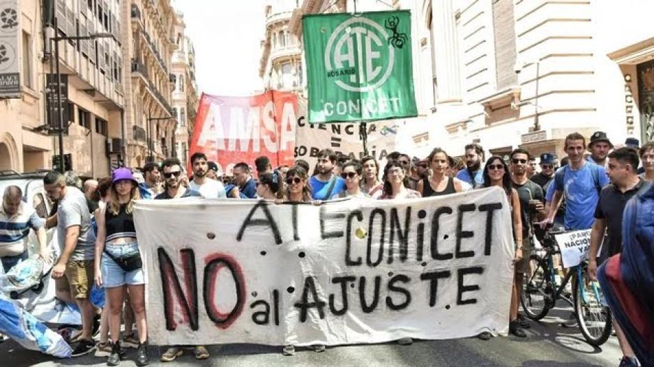 Bajo el lema “Ni un despido en Conicet”, la Asociación de Trabajadores del Estado (ATE) sostuvo el paro este miércoles con distintas actividades en todo el país, pero postergó para el viernes la marcha anunciada, debido al temporal que ocasionó destrozos en el Área Metropolitana de Buenos Aires (AMBA).