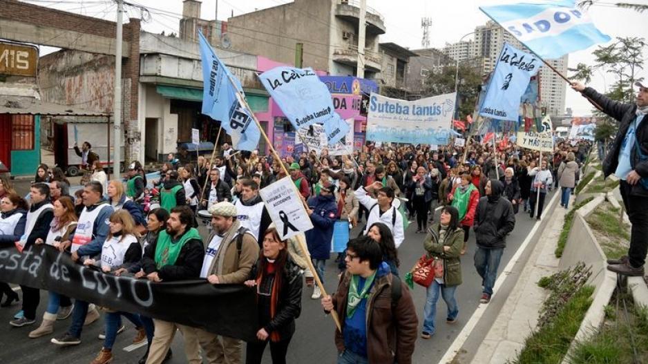 "Los Trabajadores de la Educación seguimos de pie, luchando para exigir Escuelas seguras, salarios dignos y Justicia por nuestros compañeros Sandra y Rubén", destaca en uno de sus párrafos el documento de los gremios docentes. Y enumera las diversas actividades que se vienen realizando en todos los barrios y escuelas "junto a la comunidad educativa mediante abrazos, acampes, caravanas educativas, movilizaciones, radios abiertas, junta de firmas, mesas educativas y volanteadas".