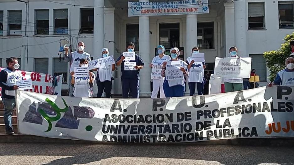 La medida de acción directa se cumple en el inicio de un paro de 48 horas, y es parte de un plan de lucha que la organización gremial profundizó en las últimas semanas con distintas acciones tendientes a visibilizar el “malestar” de los profesionales jujeños.