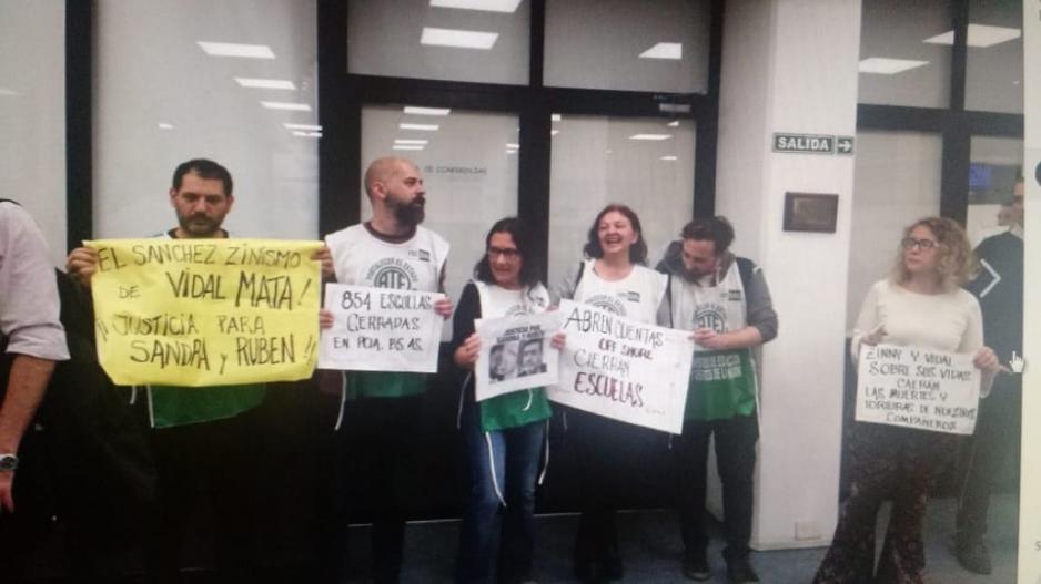El comunicado de los estatales porteños señala también que "ni bien asumió en la provincia se dedicó al abandono sistemático de la gestión: ignoró seis denuncias por escape de gas en la escuela donde murieron Sandra y Rubén pretendió cerrar 6.000 escuelas rurales abandonó toda labor de infraestructura escolar y permitió que alimentos en mal estado llegaran a las escuelas. Este desprecio por las políticas públicas es el que hoy genera que haya 69 escuelas cerradas, sólo en General Rodríguez".