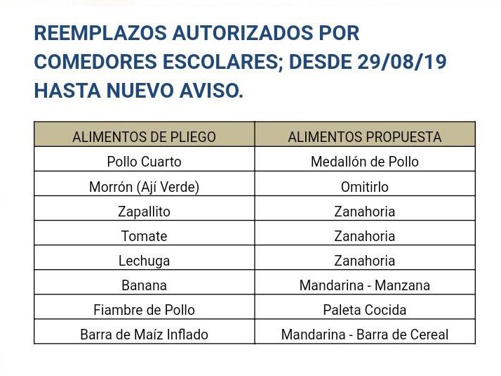 Mientras el mismo IPC-CABA reconoce que la inflación interanual en alimentos había crecido un 60 % sin contar con la devaluación de agosto, el monto destinado a cada ración en los comedores escolar permanece congelado en la misma suma de agosto de 2018. Es por eso que el Ministerio de Educación autoriza los reemplazos y eliminaciones de todo aquello que no se puede seguir comprando con el mismo dinero que hace un año. Es decir, agrava el ajuste en la alimentación de los estudiantes y deja sin zapallito, sin morrones, sin lechuga, sin tomate, sin pollo a miles de chicos y chicas.