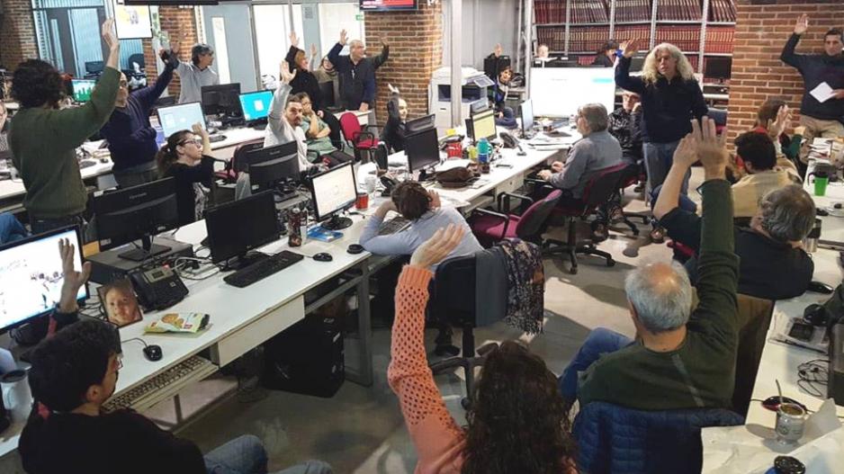 Los trabajadores de Página 12 rechazaron mediante una asamble la propuesta de aumento que les hizo el Grupo Octubre, propietaria del diario, y mantener el plan de lucha que vienen aplicando desde septiembre.