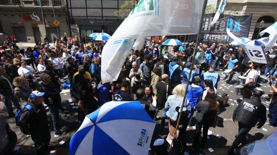 La medida de fuerza se llevó adelante ayer de 12 a 16.30, horario en el que la organización gremial concentró frente a las oficinas ministeriales donde realizó una "gran jornada de lucha" en reclamo por "recomposición salarial en la paritaria", mientras se llevaba adelante la "audiencia paritaria con las cámaras de prensa escrita", indicó Sipreba en la red social X.